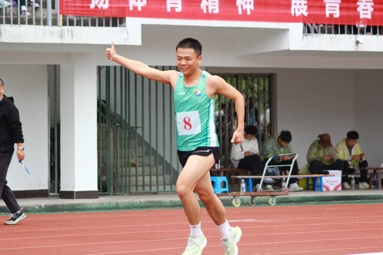 在10000米的比赛中,胡炜彬同学取得第4名的优异成绩;刘美作同学取得第8的优异成绩。